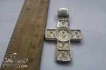 Зображено на хресті: Розп'яття Христове з майбутніми. Апостол Петро. Значок Божої Матері знак з пророками. Православний хрест.