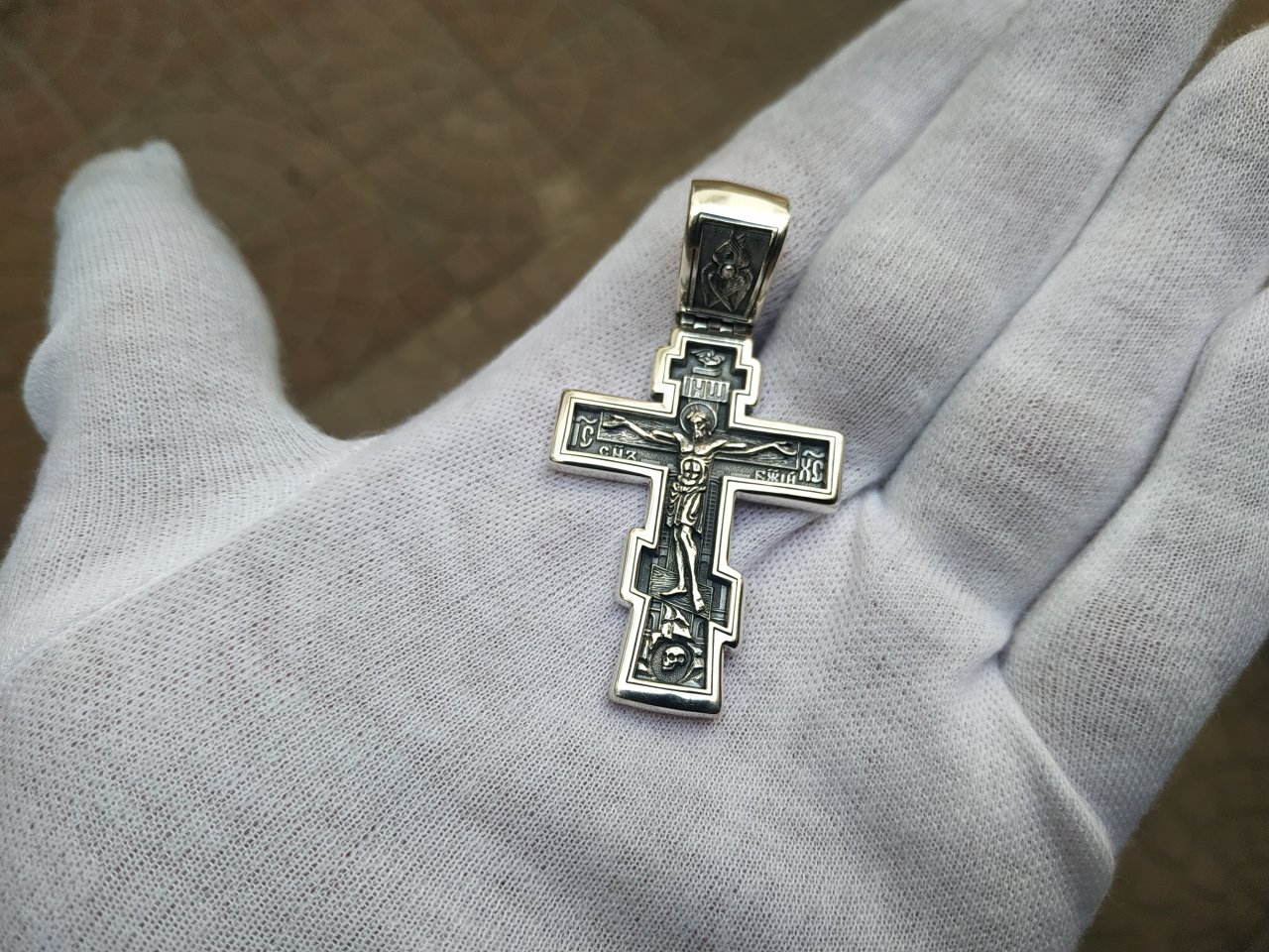 Зображено: Розп'яття Христове. Молитва "Да воскресне Бог". Православний хрест. Довжина: 4.3 см