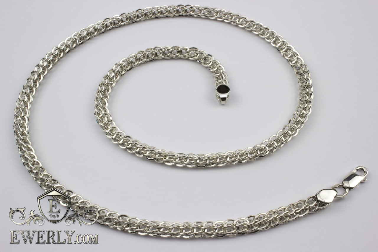 Повновісний срібний ланцюжок на шию. Унікальне плетення, розроблене нашими майстрами, і на цей час Ви ніде більше такого не знайдете. Купити або замовити вироби з цього плетіння можна тільки у нас.