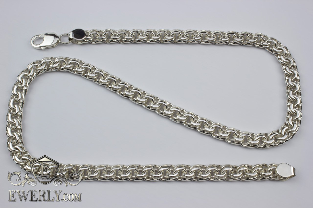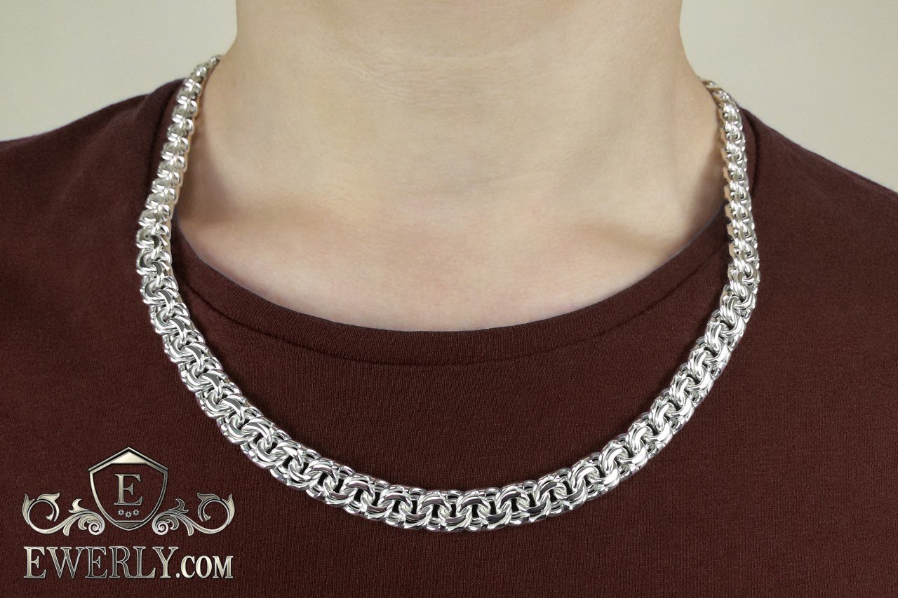 Чоловічий срібний ланцюг 90 грам - плетіння ланцюжка Бісмарк