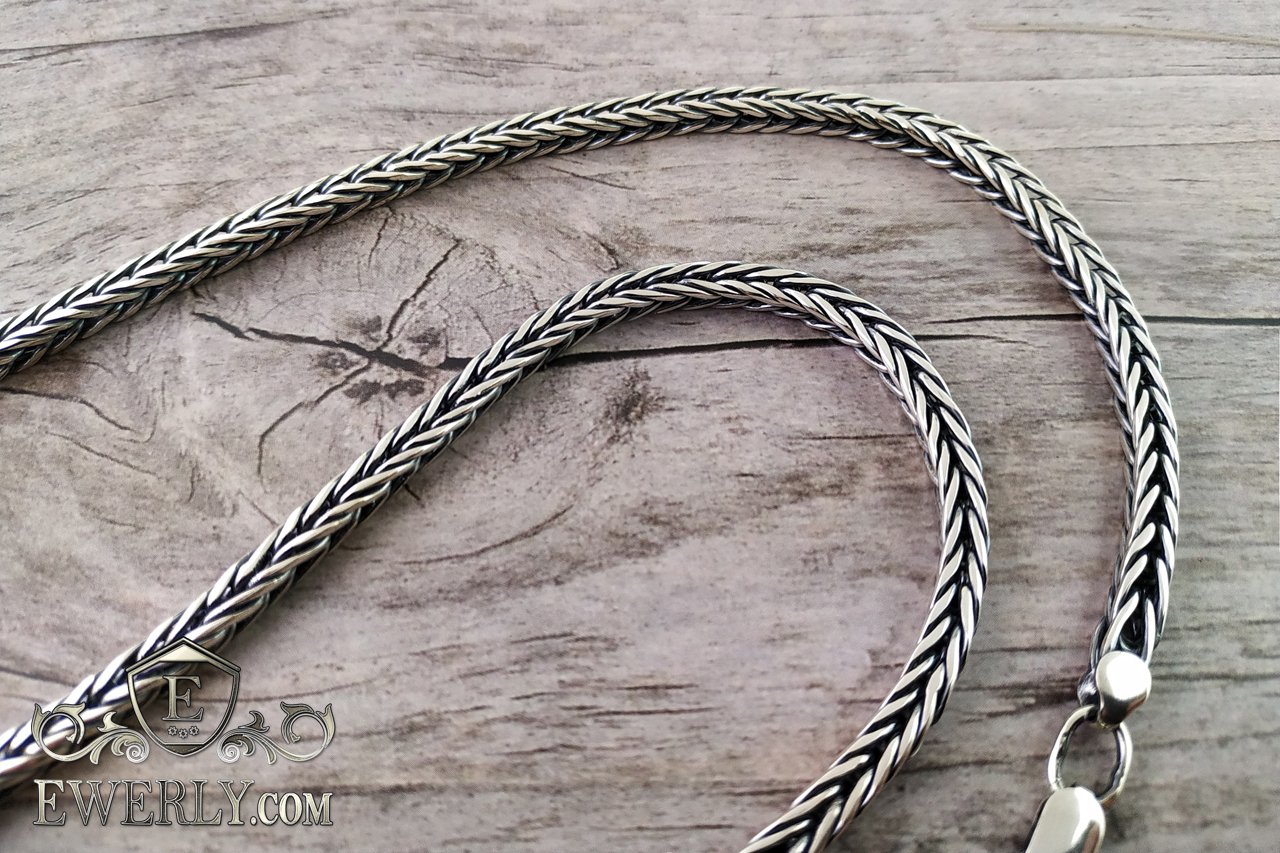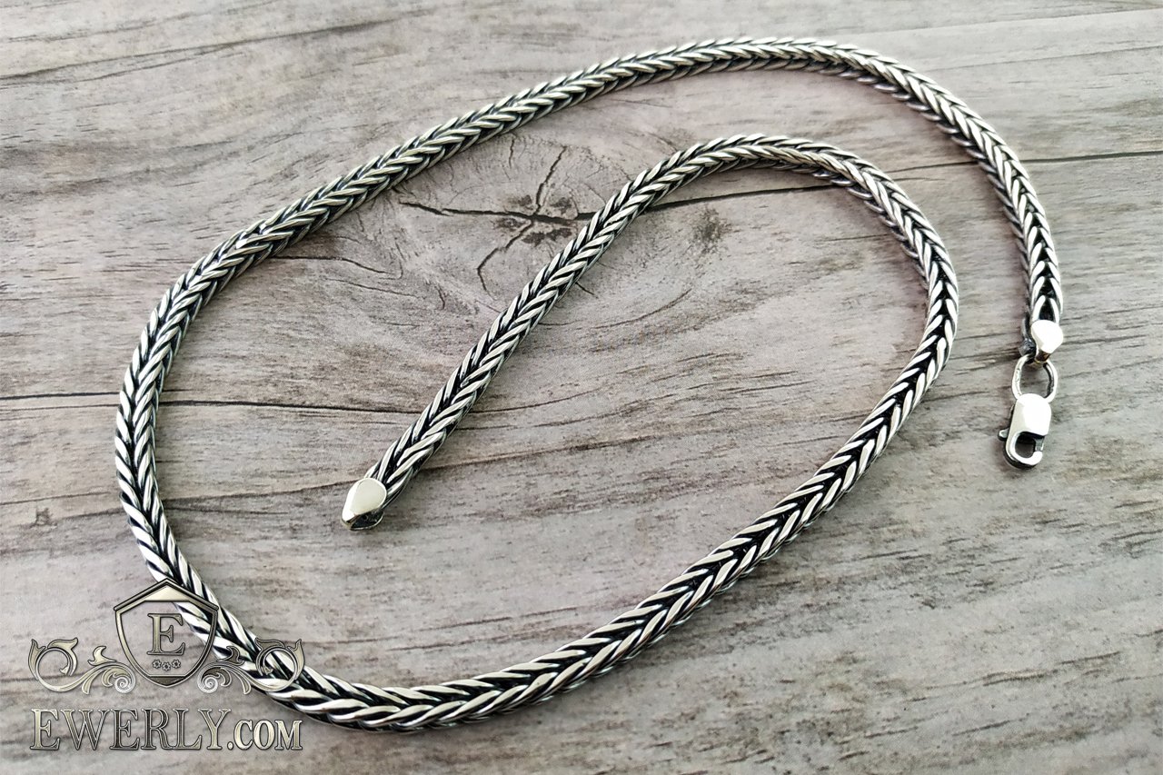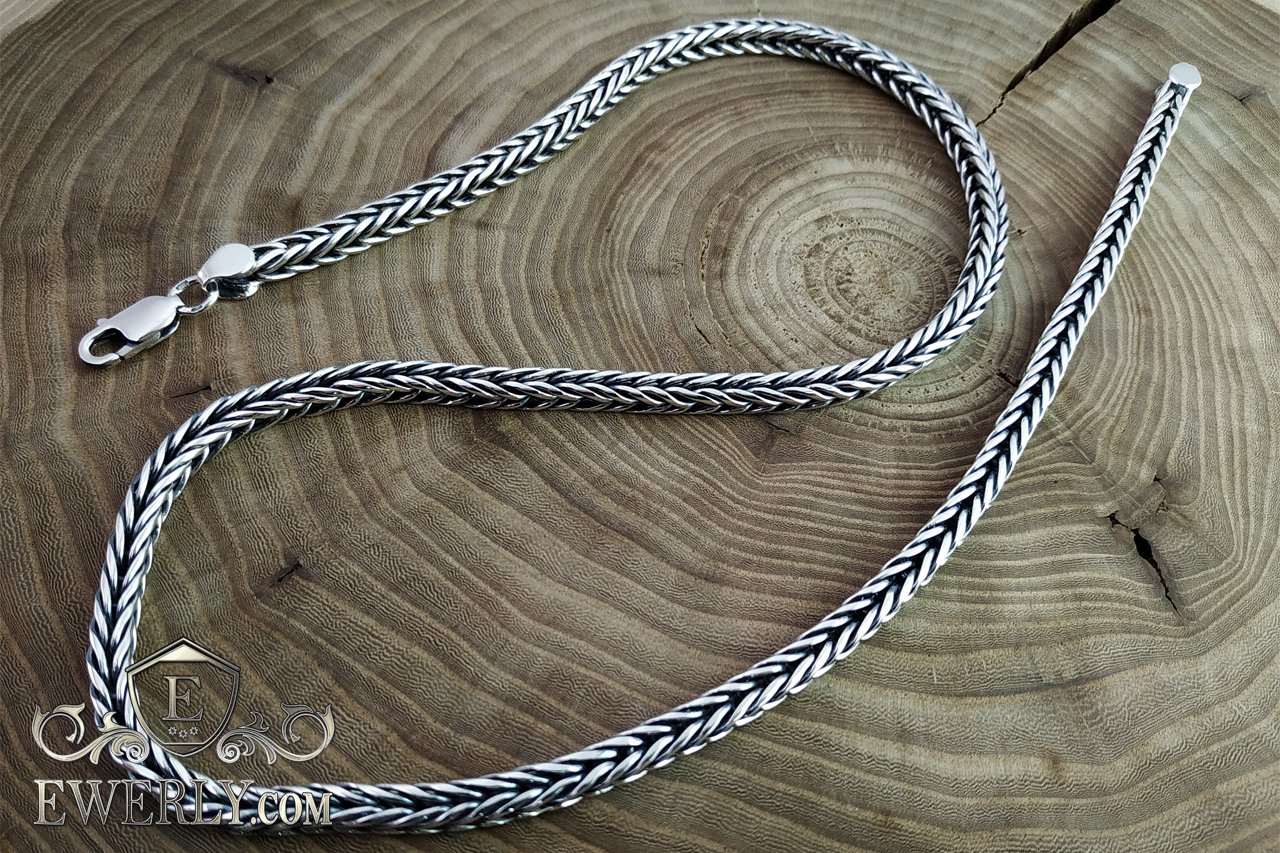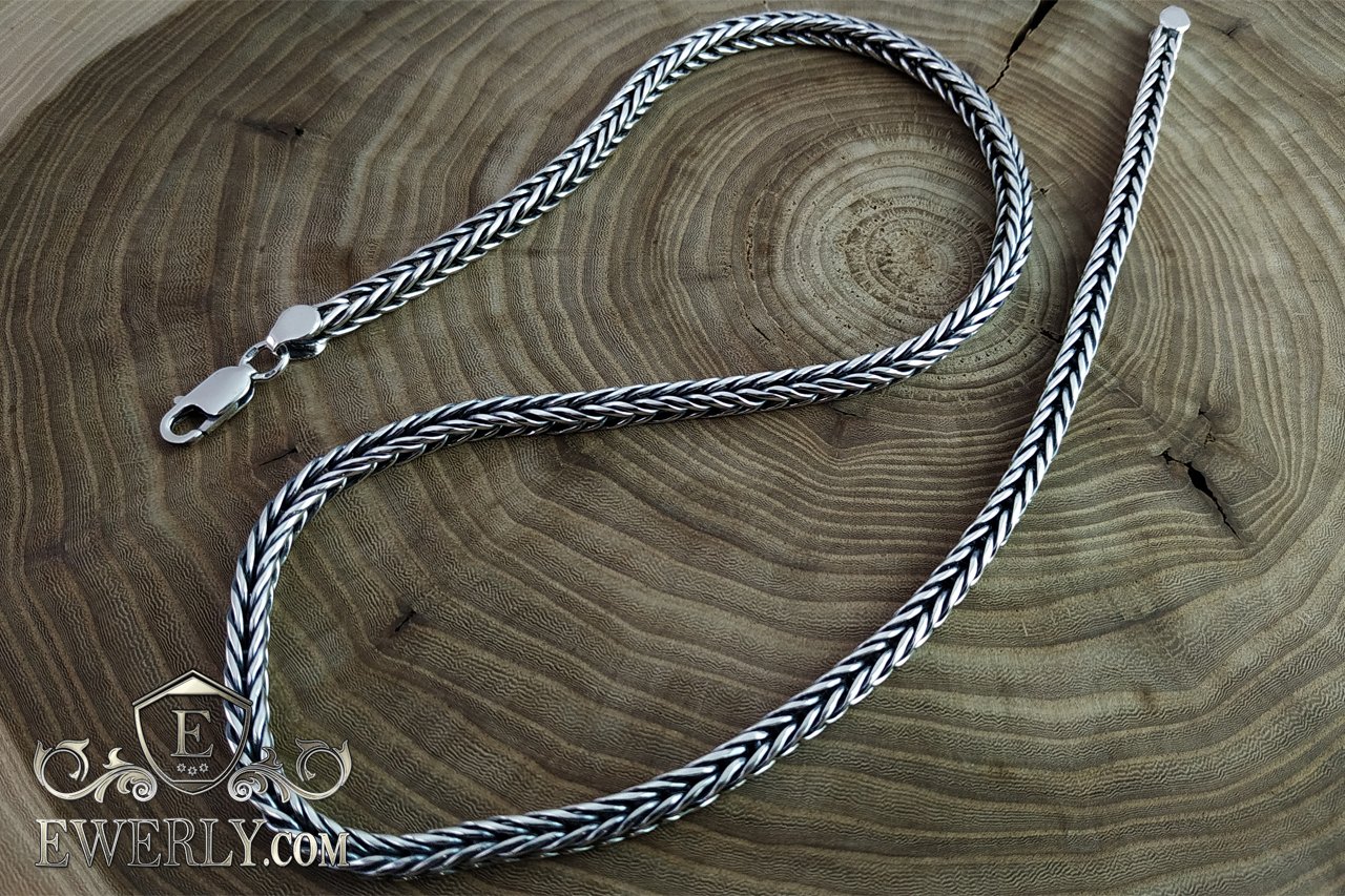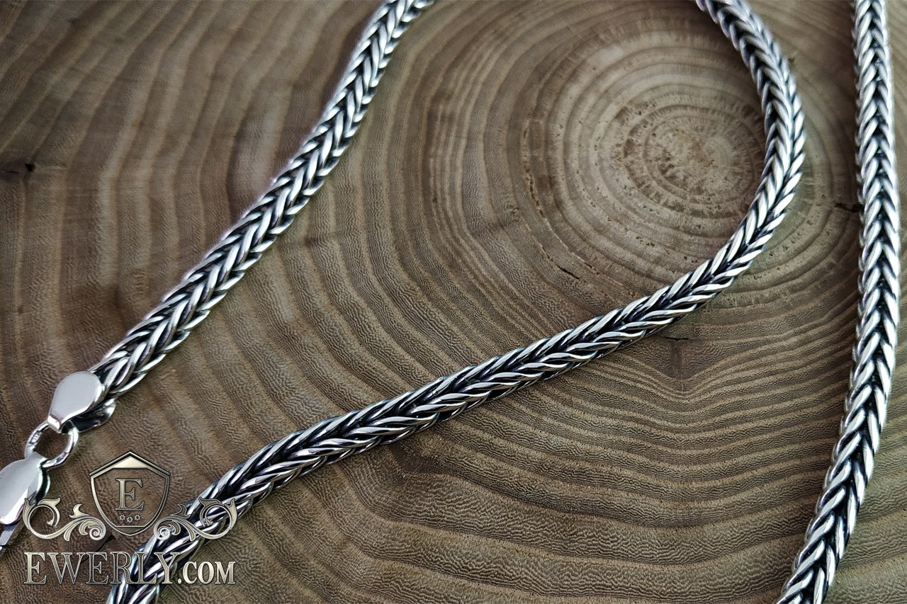 Плетіння Колос - чоловічий срібний ланцюжок з чорнінням