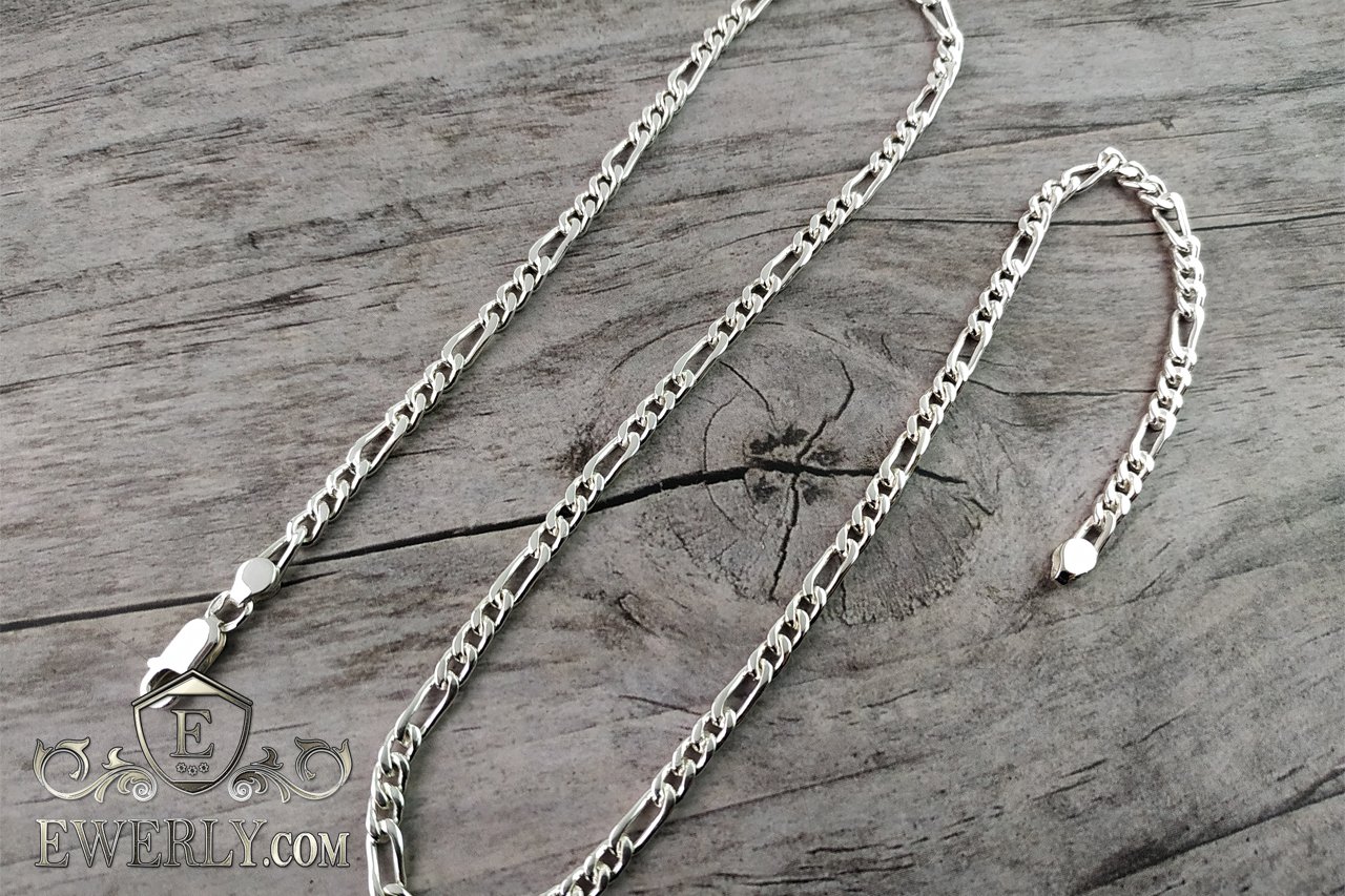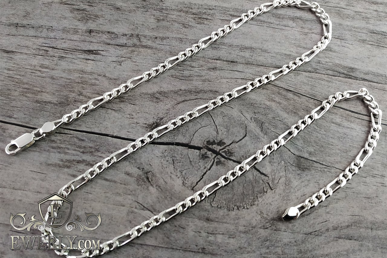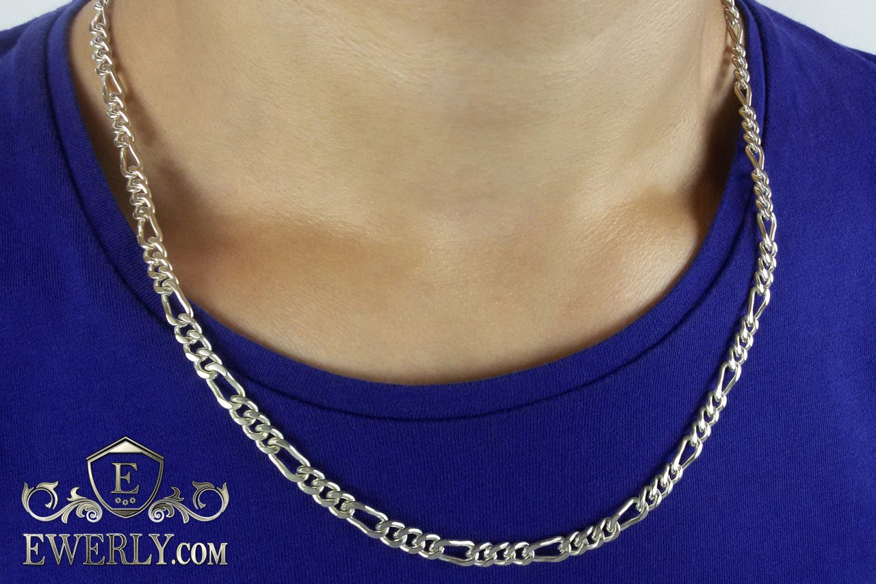 Чоловічий срібний ланцюжок плетіння Фігаро