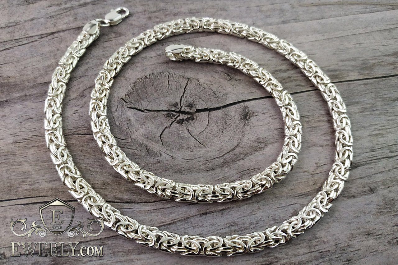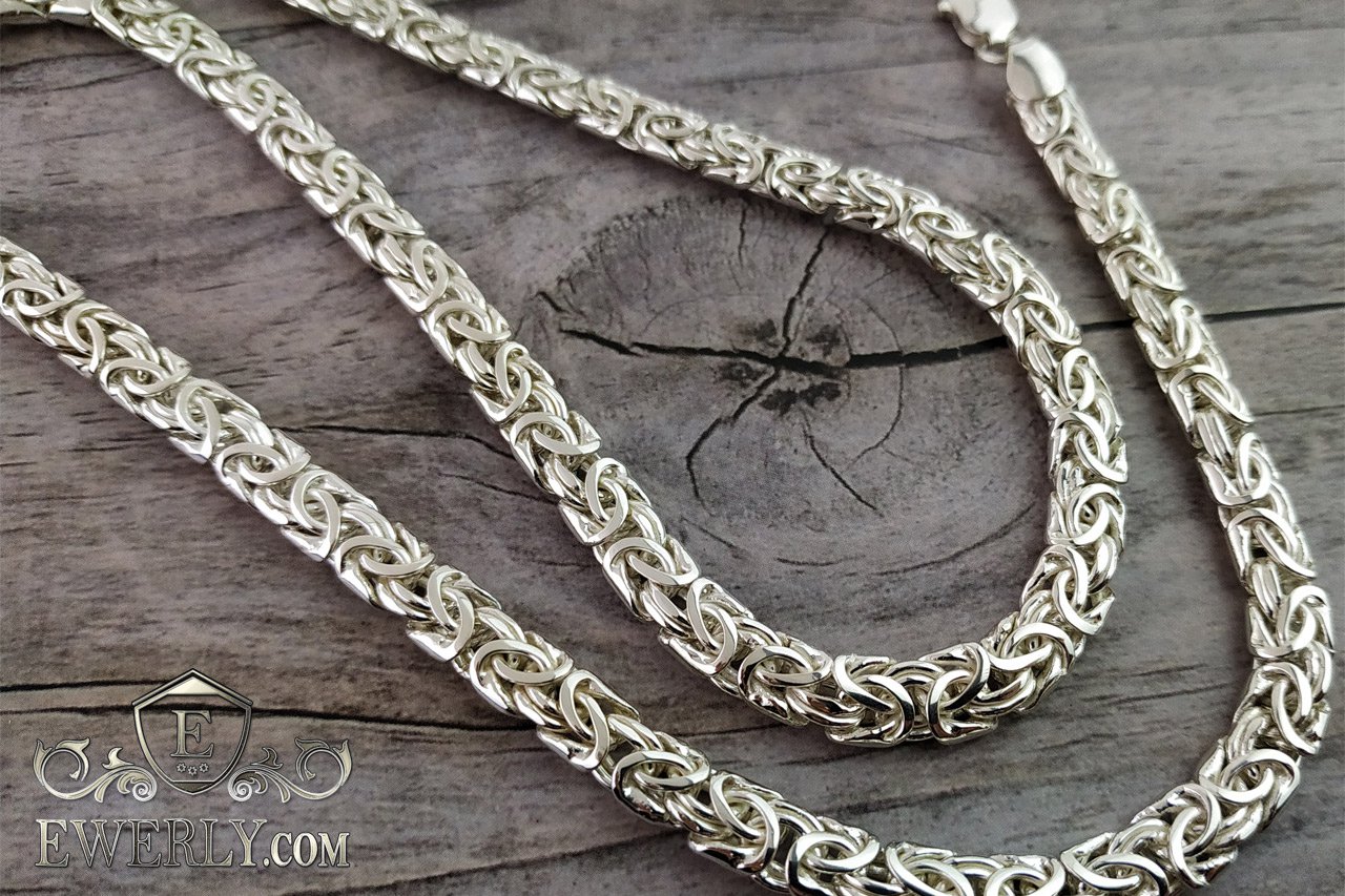 Повновісний срібний ланцюжок на шию. Дане плетіння досить трудомістке у виконанні, і більшість ювелірів не володіють достатнім рівнем навичок у виготовленні, щоб досягти високої якості прикрас, не кажучи вже про те, щоб просто виготовити. На цей час якість наших робіт з цього плетіння значно перевершує більшості інших виробників.