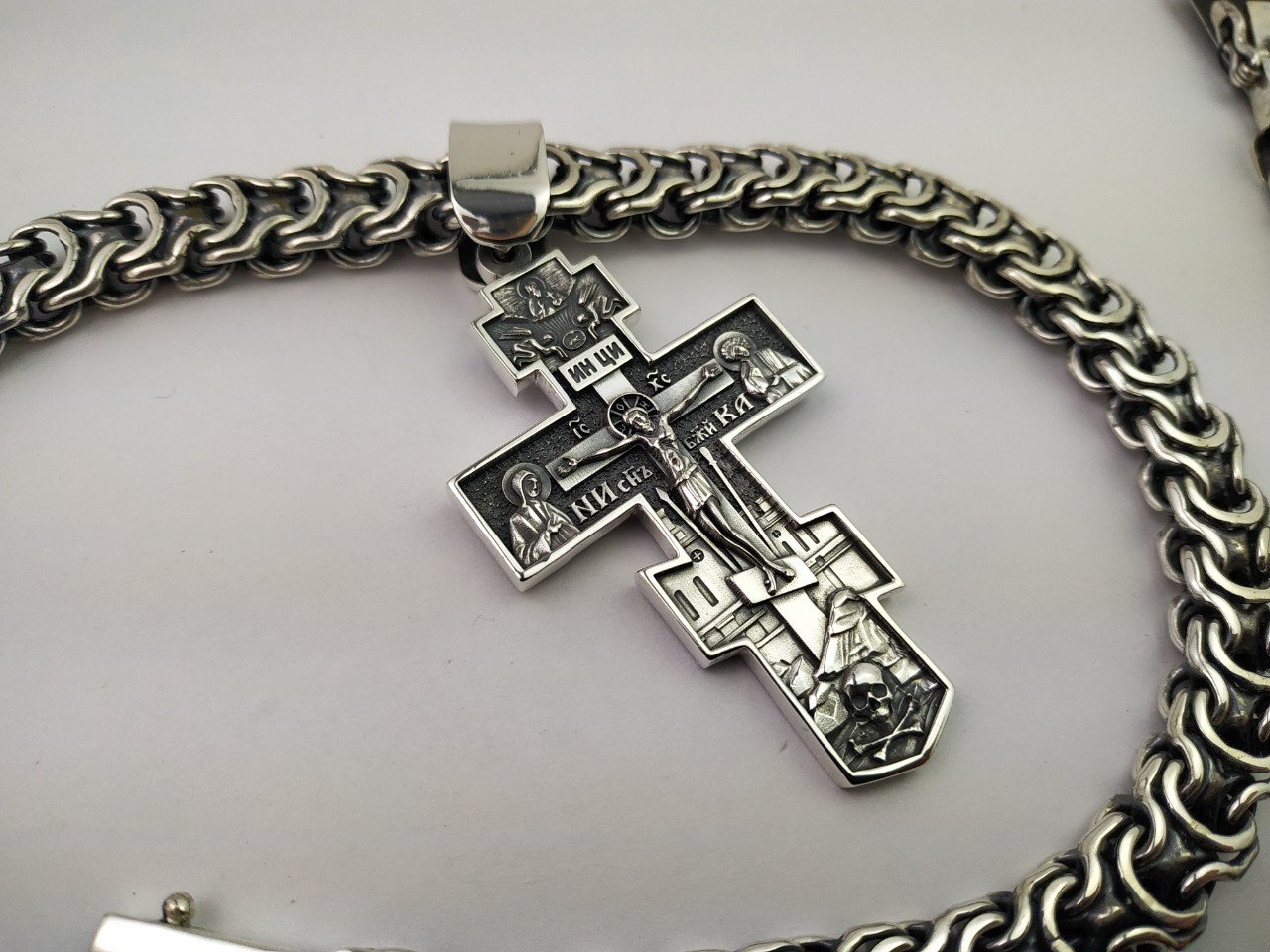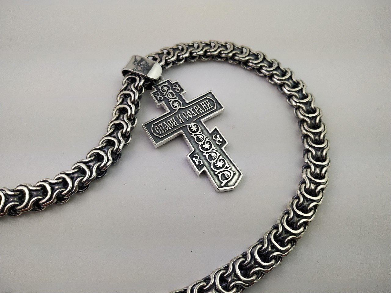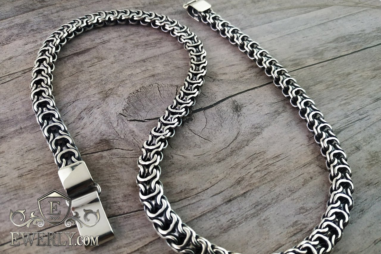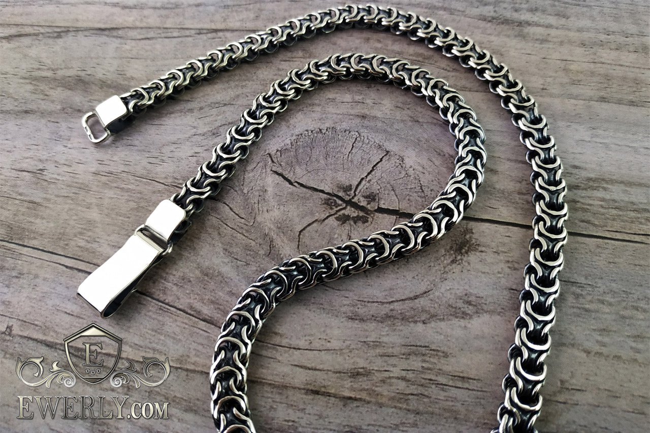Повновісний ланцюжок. На фото зображено срібний ланцюг Рамзес масою 120 грам і довжиною 60 см із замком "Коробочка та голови змій".