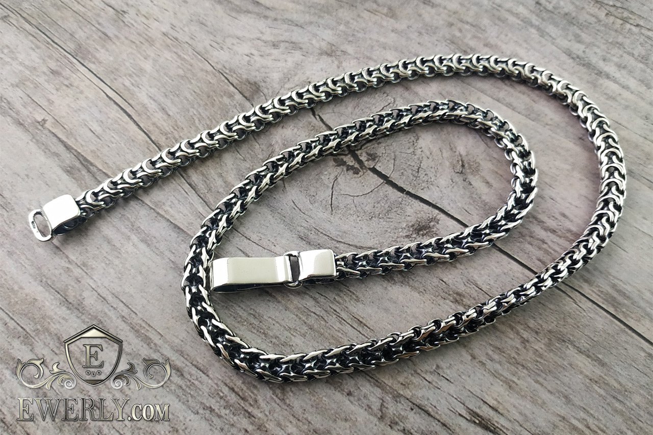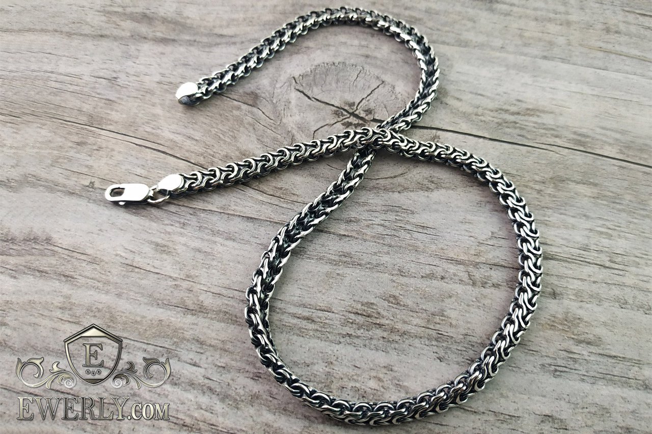 Повновісний срібний ланцюжок на шию. Унікальне плетення, розроблене нашими майстрами, і на цей час Ви ніде більше такого не знайдете. Купити або замовити вироби з цього плетіння можна тільки у нас.
