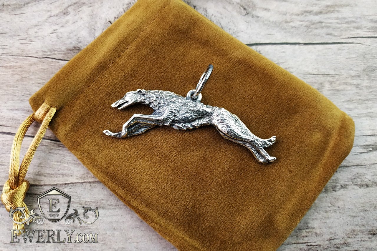 Російський хорт з срібла - срібний кулон у вигляді собаки