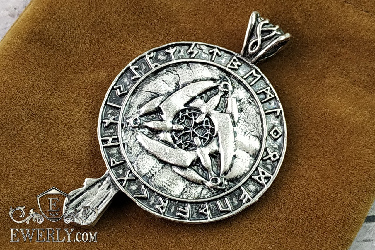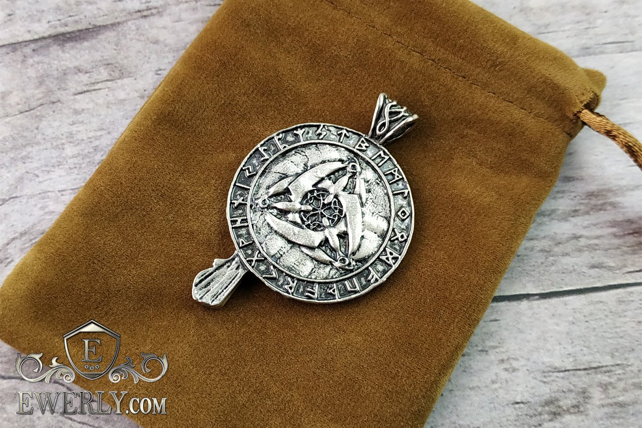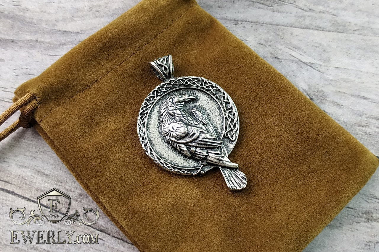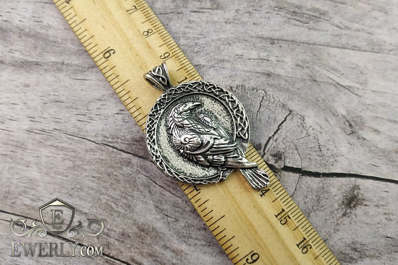 На фото показаний срібний кулон з вороном. Підвіска з срібла 925 проби - скандинавський талісман на шию.
