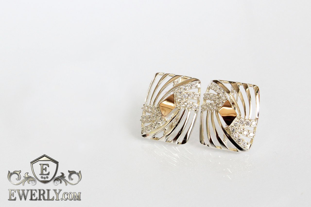 Широкі жіночі срібні сережки з золотими пластинами