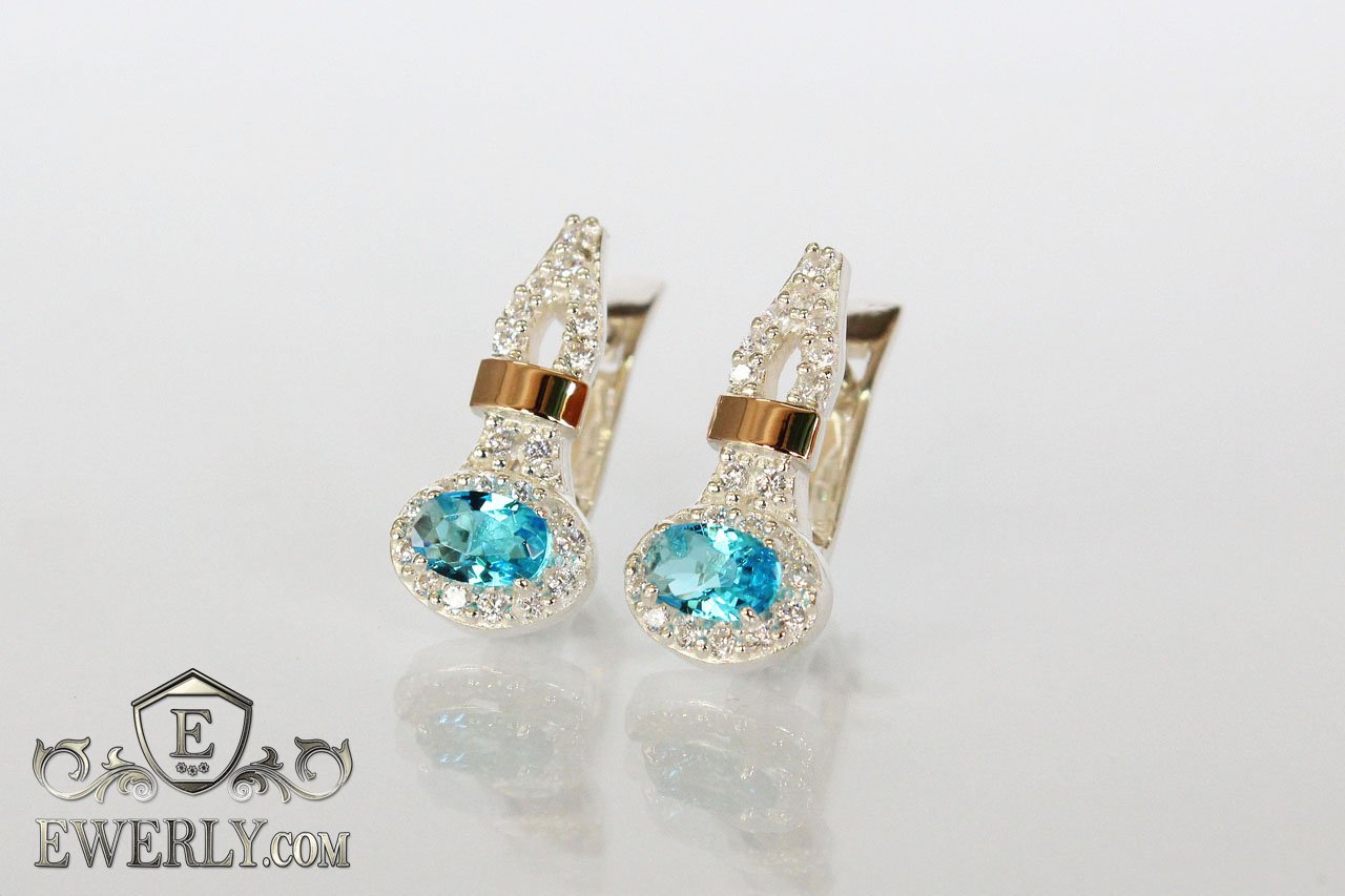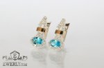 Сережки - краплі зі срібла з золотими пластинами (світло-блакитні камені)