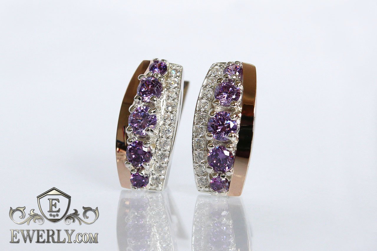 Срібні сережки з камінням (колір-аметист) для дівчини