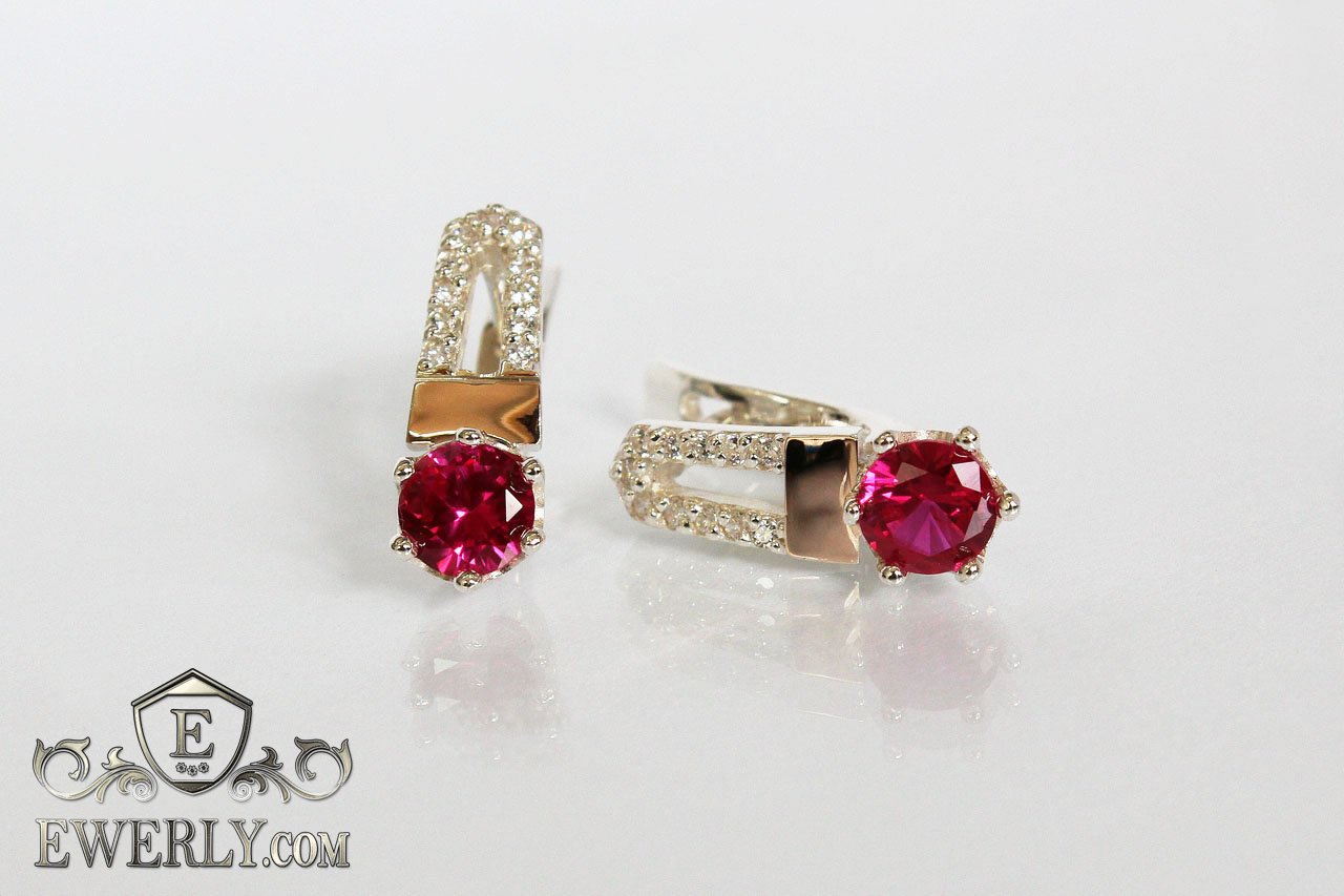 Сережки зі срібла з фіанитамі (рубіновий колір) для жінок