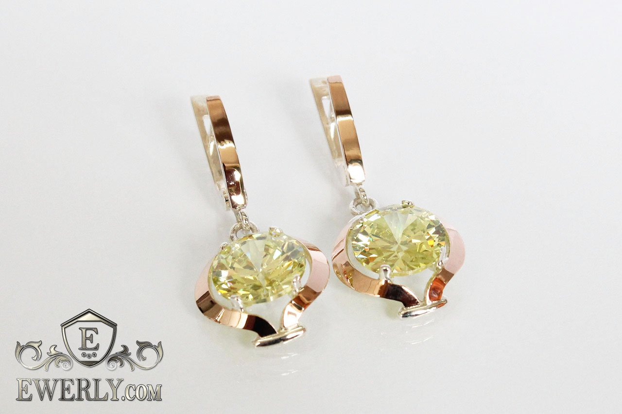 Срібні сережки з камінням (колір - цитрин) і золотом для дівчини