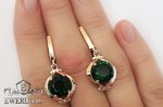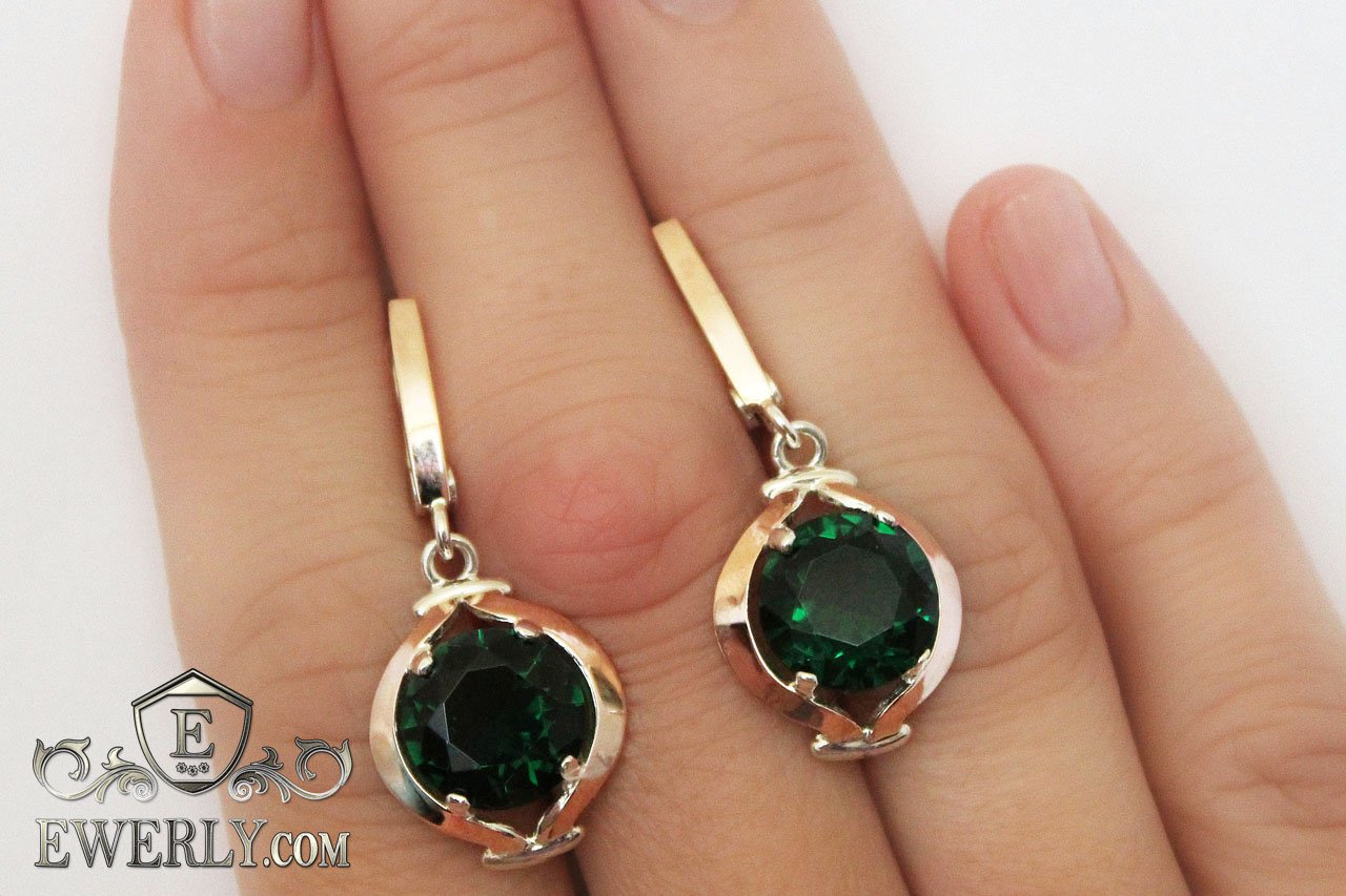 Срібні сережки з зеленими фіанітами для дівчини (золоті вставки)