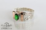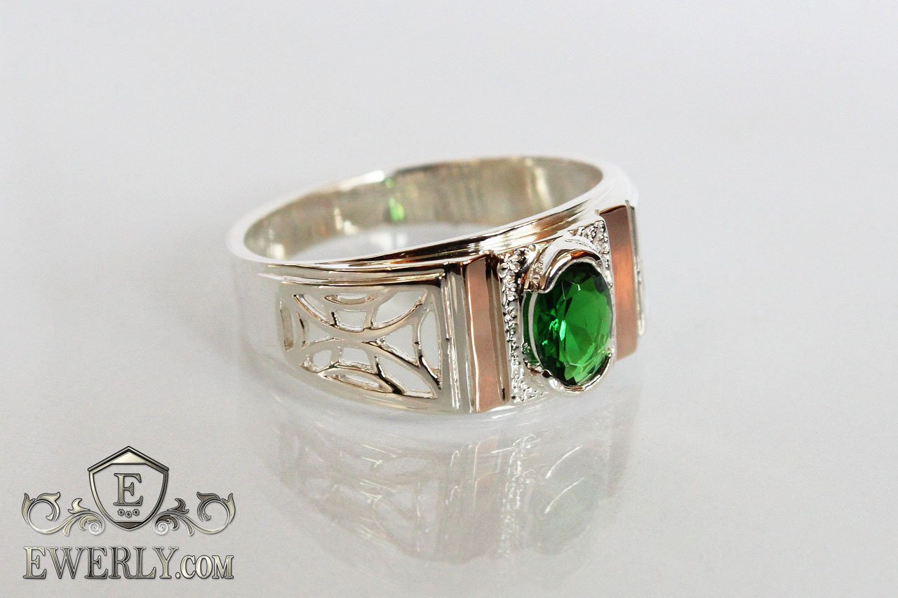 Чоловічий срібний перстень з золотом і зеленим фіанитом