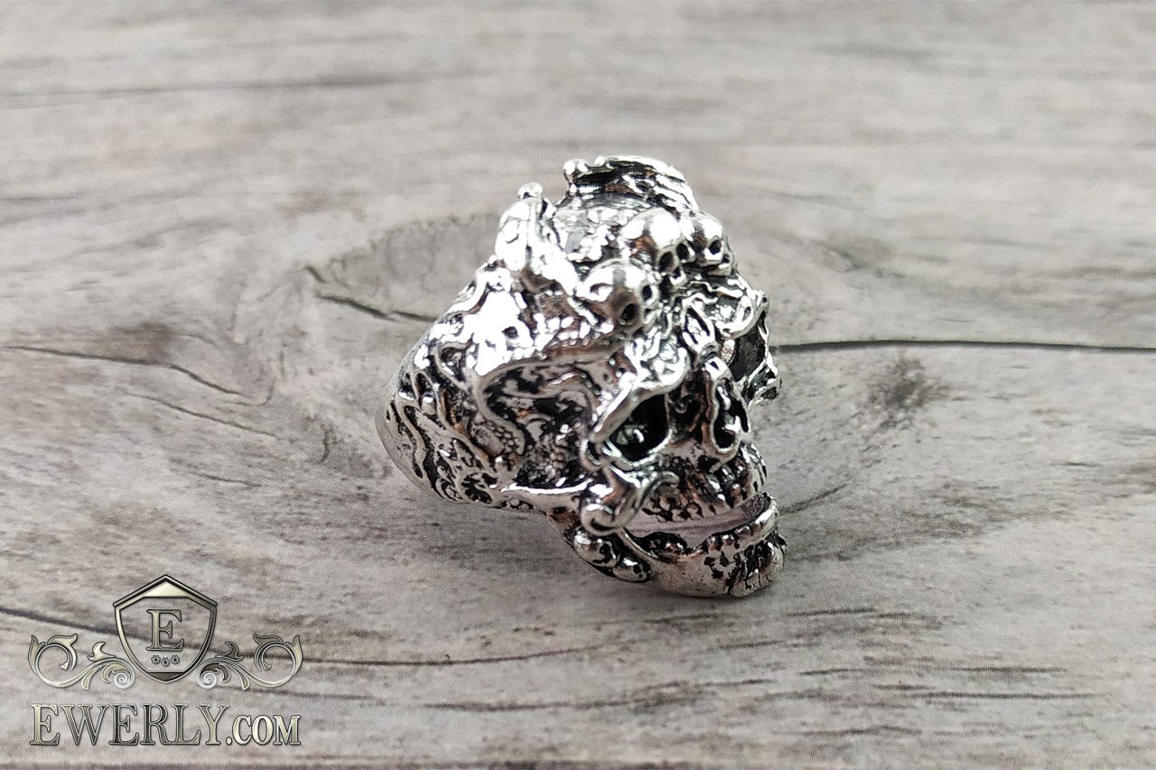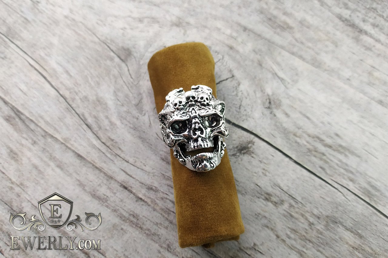 Чоловічий срібний перстень з черепом - печатка з срібла