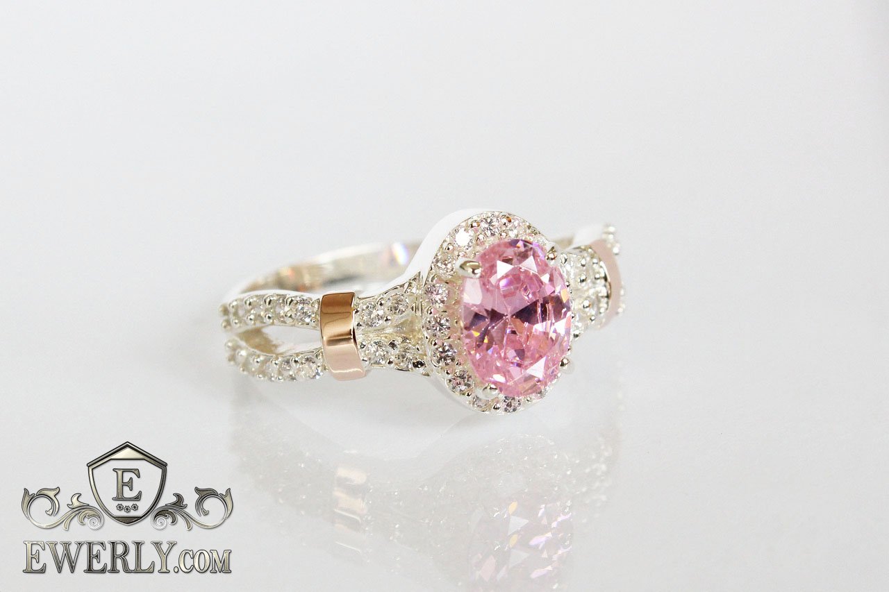Срібне кільце для дівчини з рожевим фіанитом
