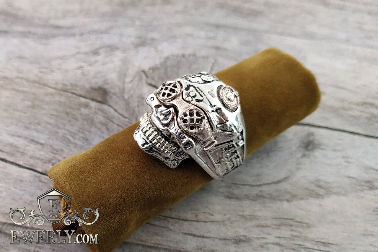 На фото зображена печатка чоловіча у вигляді черепа з срібла 925 проби.