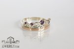 Підкоріть погляд з першого жесту — каблучка у формі витонченої корони, інкрустована п'ятьма фіанітами насиченого аметистового (фіолетового) відтінку. Форма кільця «Корона» підкреслює статус та смак власниці, а п'ять аметистових фіанітів захоплюють насиченим бузковим сяйвом. В основі корони розташований найбільший фіаніт, по краях каміння зменшується, формуючи м'який градієнт кольору.