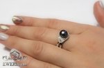 Срібне кільце з каменем (чорний фіанит - перли)