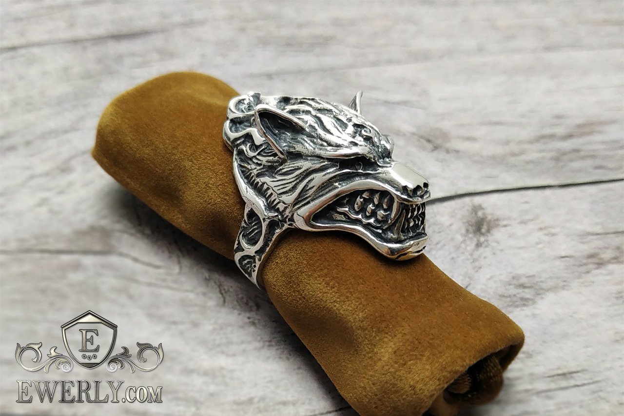 Срібний чоловічий перстень з головою вовка. Кільце з вовком